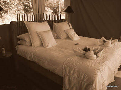 ...here is a closer look, he is a beauty right? He stayed there for 4 nights. Behind our bed. We counted 5 in our tent. They are harmless and we are in Africa, their home, anyway, the manager mentioned that if you take them out, they just come right back in. It's a nice tent. I could see why...
