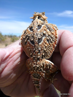 it's the horned lizard again. actually it's one of his many cousins, we found several of these guys on the trail and in the washes...