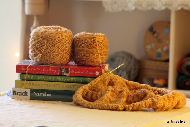 i cast on for a sweater, knit a bit further than shown here, then saw a pattern i like much better and pulled the whole thing off. so now i only have a pile of lovely curly wool. it is tosh merino light, madeline tosh, colorway alabaster, from my stash. i love this beautiful handpainted wool. can you see the difference in these two skeins? switching off every couple rows is necessary so there will be a better flow of color and less obvious changes in skeins. hopefully the new pattern i plan to make will do it justice. have you done this too, changed your mind well into a project? oh dear. i've begun the